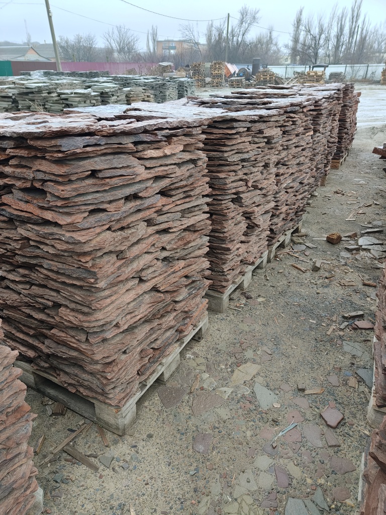 Плитняк песчаник дракон красный для облицовки цоколя, отмостки 20-35 мм